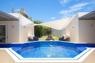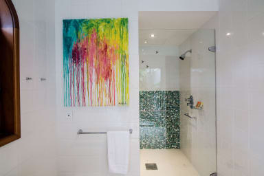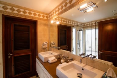 Chacune des chambres de la villa est accompagnée de sa propre salle de bains, sept d'entre elles disposant également d'une douche extérieure. Ce mélange d'espaces de vie intérieurs et extérieurs permet aux hôtes de s'immerger totalement dans la beauté des environs.