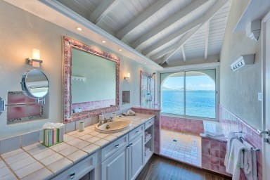 La Villa Mirabelle est une superbe propriété en bord de mer située au sommet d'une colline, offrant une vue imprenable sur le lagon de Simpson Bay à St Martin. Cette magnifique villa est nichée au milieu d'un jardin tropical et possède sa propre plage privée.