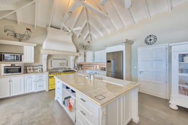 La Villa Mirabelle est une superbe propriété en bord de mer située au sommet d'une colline, offrant une vue imprenable sur le lagon de Simpson Bay à St Martin. Cette magnifique villa est nichée au milieu d'un jardin tropical et possède sa propre plage privée.