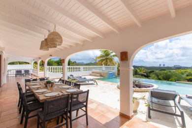 La villa séduit par ses volumes généreux et son ambiance chaleureuse, inspirée d’une élégance méditerranéenne subtilement mêlée au charme tropical.