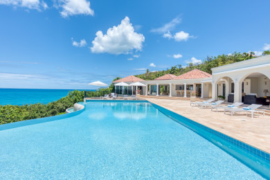 Perchée à flanc de falaise au cœur de la prestigieuse résidence des Terres Basses, la Villa La Dacha est une propriété d’exception offrant des vues spectaculaires sur la mer des Caraïbes et l’île d’Anguilla. Véritable oasis de raffinement, cette villa de cinq chambres incarne l’alliance parfaite entre élégance contemporaine et art de vivre caribéen.