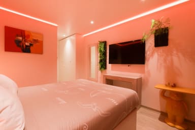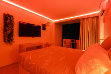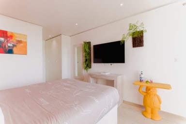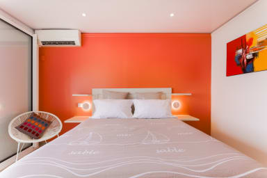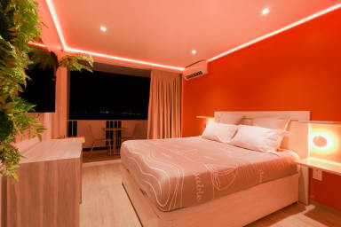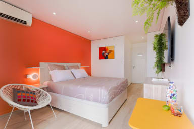 L’Appartement Sunset Room dispose d’une chambre climatisée spacieuse, idéale pour un séjour en couple.