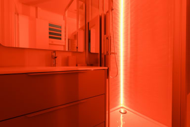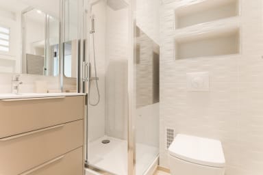 • Salle de bain attenante avec douche, WC, sèche-cheveux et produits de bain